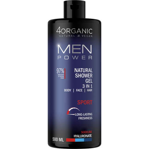 • 4ORGANIC men power sport naturalny żel pod prysznic 3w1 500ml
